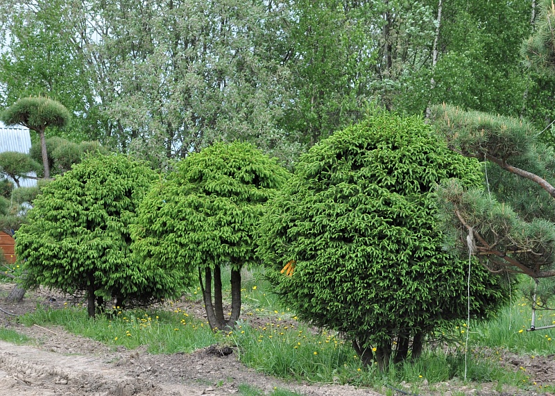 Сохраняет декоративность круглый год, добавляя структуру и объём в любой ландшафт. Изящная форма зонта придаёт растению элегантность и гармонию, делая его отличным выбором для одиночных посадок, аллей и декоративных композиций.