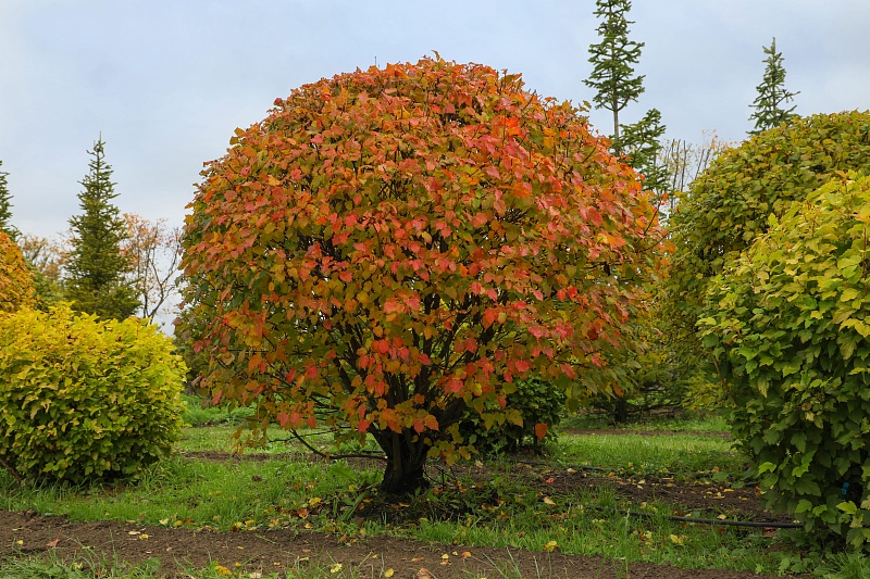 Весной и летом клён радует густой зеленью резных листьев, а осенью преображается, окрашиваясь в яркие огненно-красные и оранжевые тона. Шарообразная форма придаёт растению гармоничный и ухоженный вид, делая его выразительным акцентом в саду или городской среде.