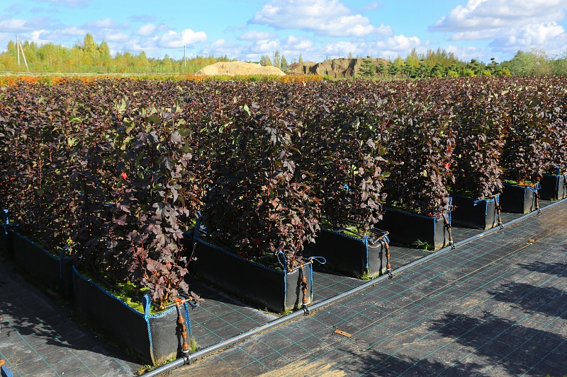 Пузыреплодник калинолистный "Андре" (Andrea) – декоративный лиственный кустарник, который отличается эффектной пурпурно-красной листвой и элегантными формами. В начале лета цветет белыми или розоватыми цветками, что добавляет дополнительную декоративность. Осенью на кустарнике появляются красноватые плоды, которые сохраняются до зимы и привлекают внимание своим необычным видом.