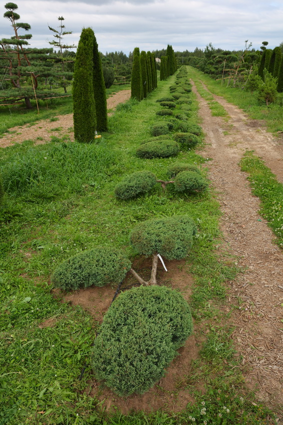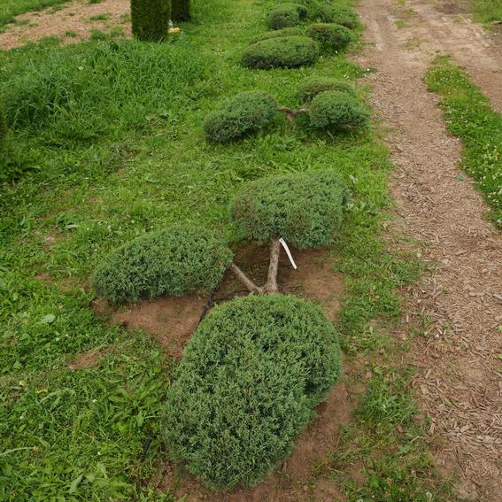 Ниваки из можжевельника 'Pfizeriana Glauca' - это сочетание плавных линий, выразительного цвета и японской эстетики в уникальных формах.